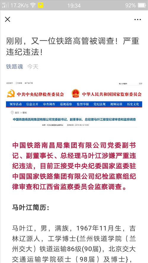 刚刚,又一位铁路高管被调查!严重违纪违法!