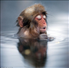 Japanese snow monkeys in the hot spring to keep warm, close their eyes to enjoy