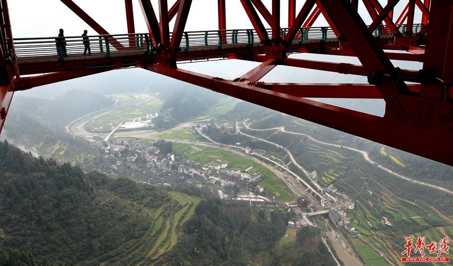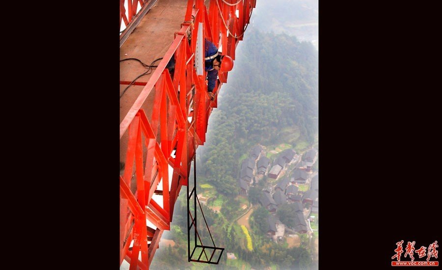 On August 20, 2011, aizhai bridge steel truss girders closure. The grand canyon bridge across DE ram and the steep aizhai winding road set each other off becomes an interest.
