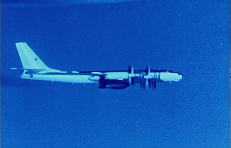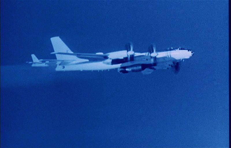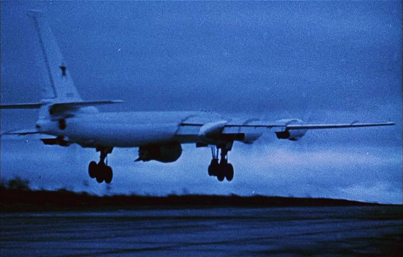 (1961年10月30日晨9时27分,载有巨型氢弹的“图-95B”飞机与另一架载有实验室的“图-16”飞机结伴起飞,航向直指新地岛群岛中的某个岛。)