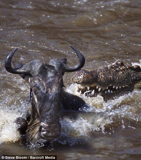 By the Nile crocodile bite, the African wild gazelles look in the eyes is very innocent( 被尼罗河鳄鱼咬住,非洲野羚的眼神很无辜)