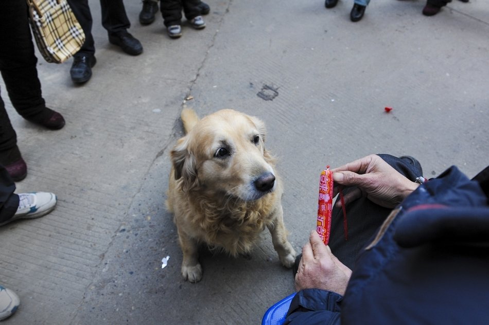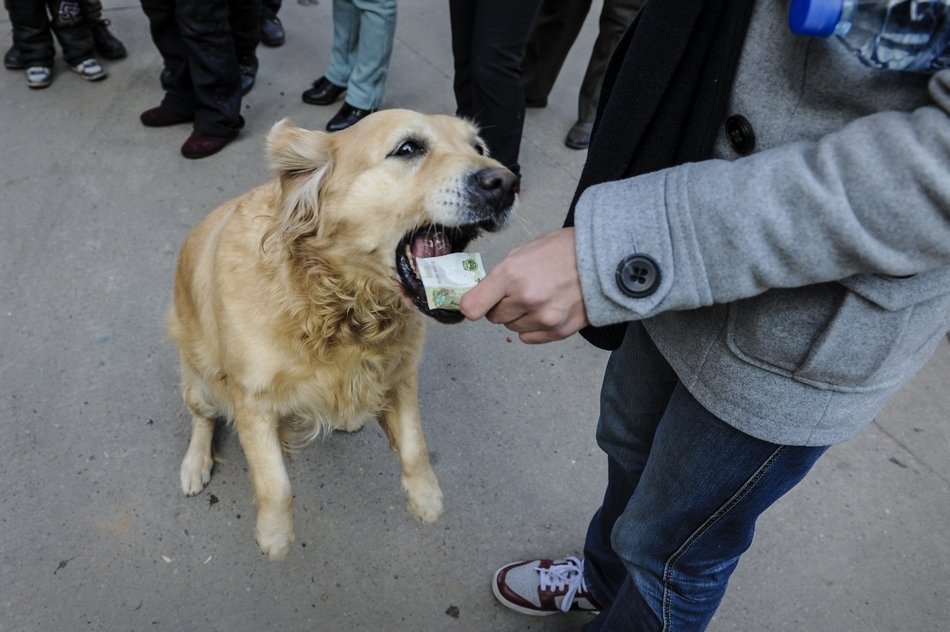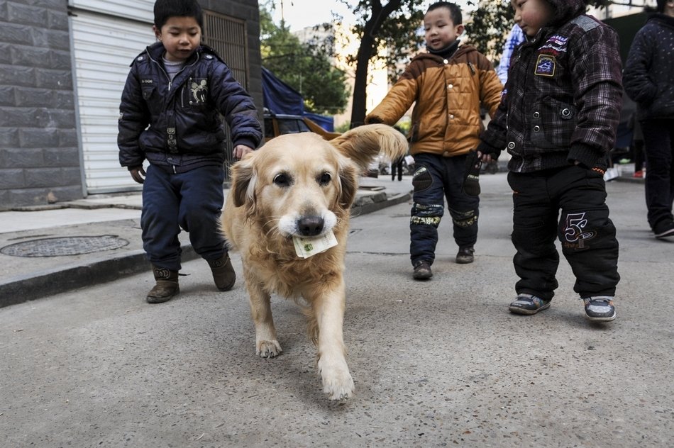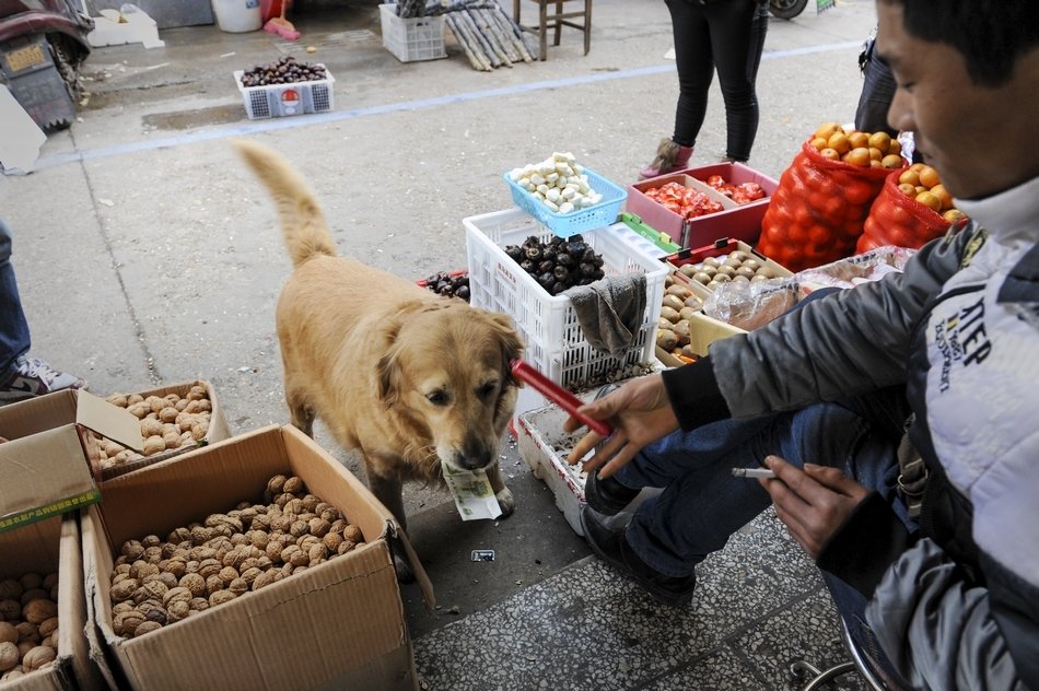 In changsha nearby Mars farmers markets saw a smart dog holding a dollar, The dog give the