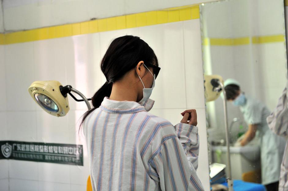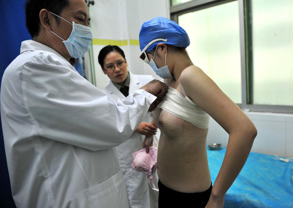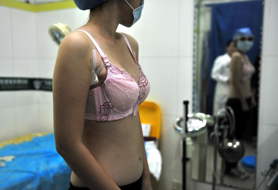 2012年12月2日,广州,90后大学毕业生小美在经历了咨询、等待、麻醉、手术,术后按摩恢复等漫长的过程后,终于在解开胸前绷带的那一瞬,小美 看到自己A-罩杯变成了C罩杯,高兴地试戴新买的一个C罩杯的胸罩。 据悉,为能在面试中脱颖而出,为自己谋得一份心仪的工作。90后大学毕业生小美四处借钱、贷款,凑了近3万元前往武警广东总队医院整形修复中西 做隆胸手术,希望自己平平的身材能迅速改善,让“事业线”生动起来,为自己的前途减少障碍。 11月8日,广州,武警医院修复中心,19岁的小美(化名)换上病人服。小美称,自己在学校虽然品学兼优,只因胸部平平没有男生喜欢,让她很自卑 ,为此,她正努力打工攒钱以改变自己的形象。针对小美的请求,医生建议:生理可整形,心理需辅导 11月8日,针对小美的情况,该院整形修复中心医生崔东称,“19岁的年纪,从生理上来说,已经成熟,可以进行隆胸手术。但从心理上来说,小美的 思想还不够成熟,考虑问题不够全面。我们希望她能通过这次手术获得自信