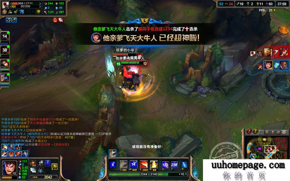英雄联盟超神十连杀截图-卡拉曼达区,他亲爹飞天大牛人