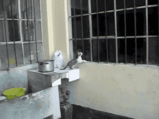 The kitten was trapped inside the house, and the cat climbed to the window and rescued the little one.(小奶猫被困在屋子里,喵妈妈爬到窗户上把小家伙救了出来。)