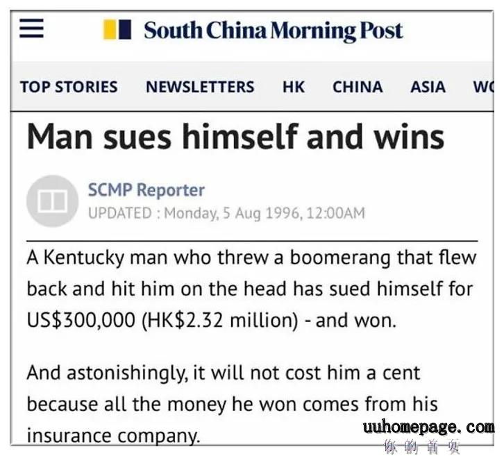 男子投掷回旋镖击中自己头部 起诉自己获赔30万美元