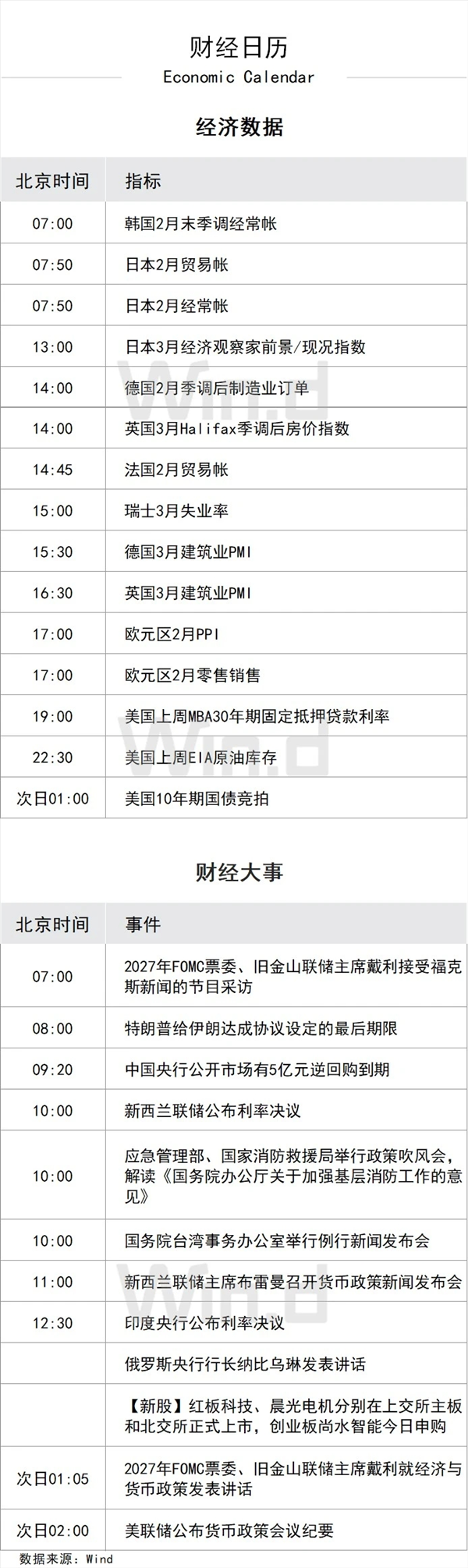 重要经济日程