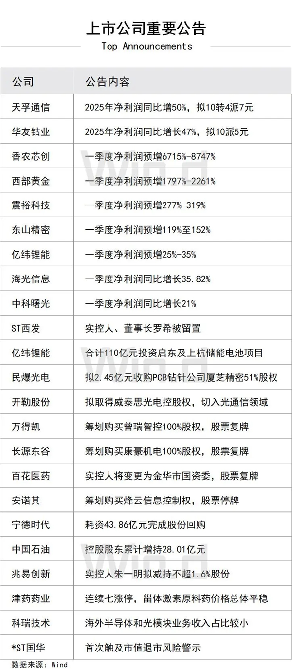 4、全国服务业大会召开在即,推动服务业扩能提质举措将推出。国家发改委主任郑栅洁此前表示,两会后将召开全国服务业大会,国家将出台一系列扩能提质举措。“十五五”时期,预计服务业规模将突破100万亿元。
